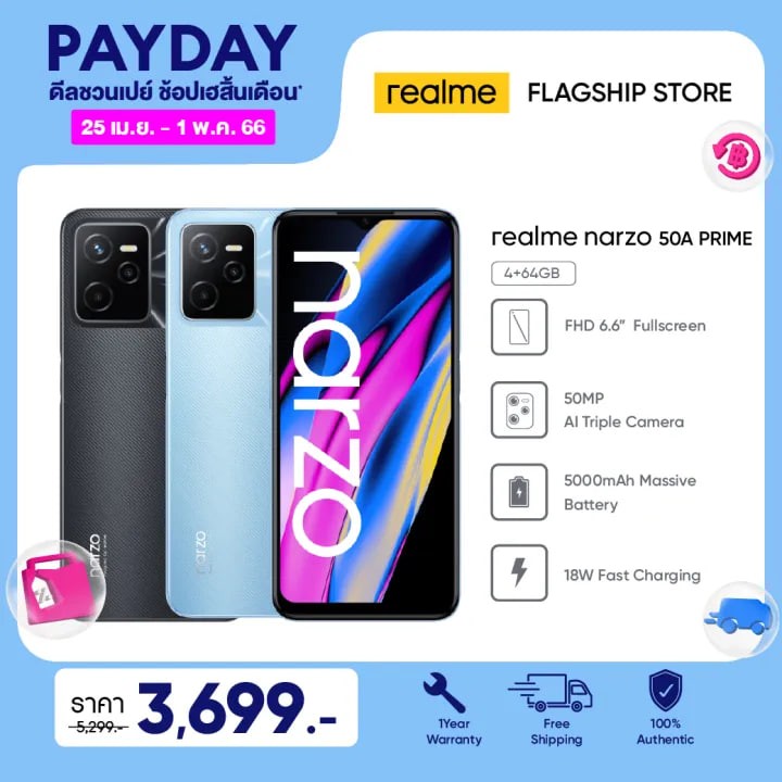 realme Narzo 50a Prime (4+64GB) แบตเตอรี่ขนาดใหญ่ 5000mAh หน้าจอ FHD+ fullscreen